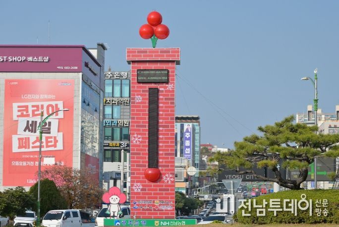 사랑의 온도탑은 전남 동부권 나눔 실천의 상징으로, 여수시청 앞 로터리 1호 광장에 설치됐다.