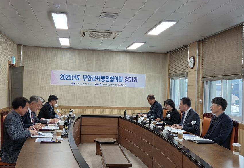 전남투데이 김길룡 기자 | 전라남도무안교육지원청(교육장 김보훈)이 12월 2일 무안교육지원청 2층 중회의실에서 ‘2025 무안교육행정협의회 정기회’를 열고, 지역 교육 발전을 위한 현안 해결 방안을 논의했다.