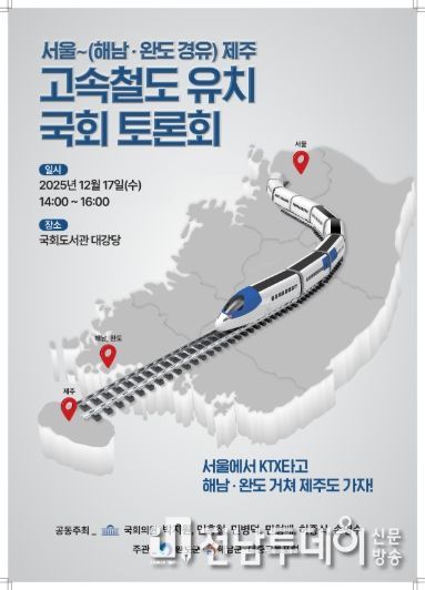 전남투데이 김길룡 기자 | 해남군은 오늘 17일 국회도서관 대강당에서 해남과 완도를 경유해 제주까지 연결되는‘서울~(해남·완도 경유) 제주 고속철도 유치 국회토론회’를 개최한다.