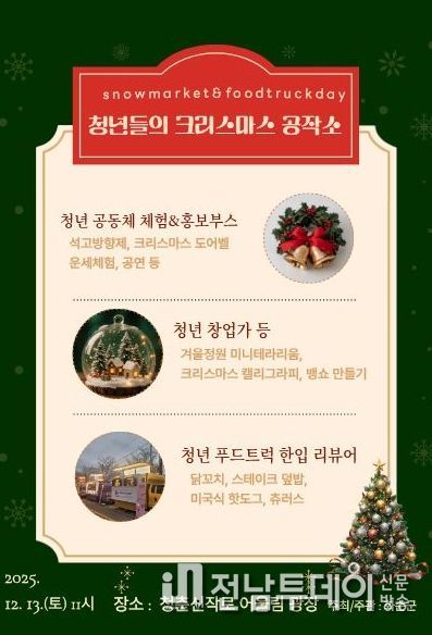 조미화 인구청년정책과장은 "서로 다른 분야에서 활동하는 청년들이 교류하고, 군민들과 함께 연말의 따뜻한 추억을 쌓을 수 있는 자리"라며, “많은 분이 방문해 청년들의 열정을 응원해 주시길 바란다”라고 전했다.