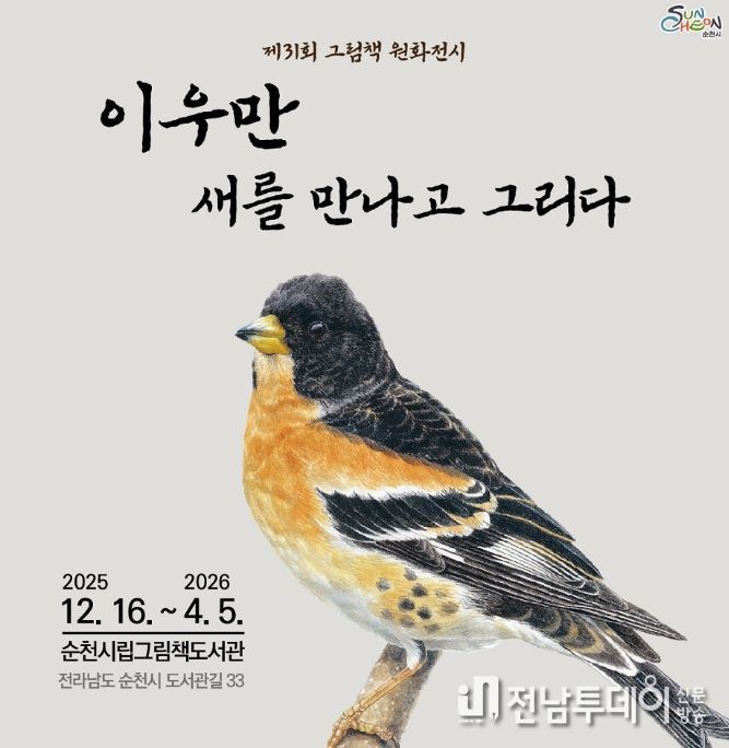 전남투데이 조평훈 기자 | 순천시는 오는 16일부터 2026년 4월 5일까지 순천시립그림책도서관에서 제31회 그림책 원화전시 '이우만 새를 만나고 그리다' 를 개최한다.