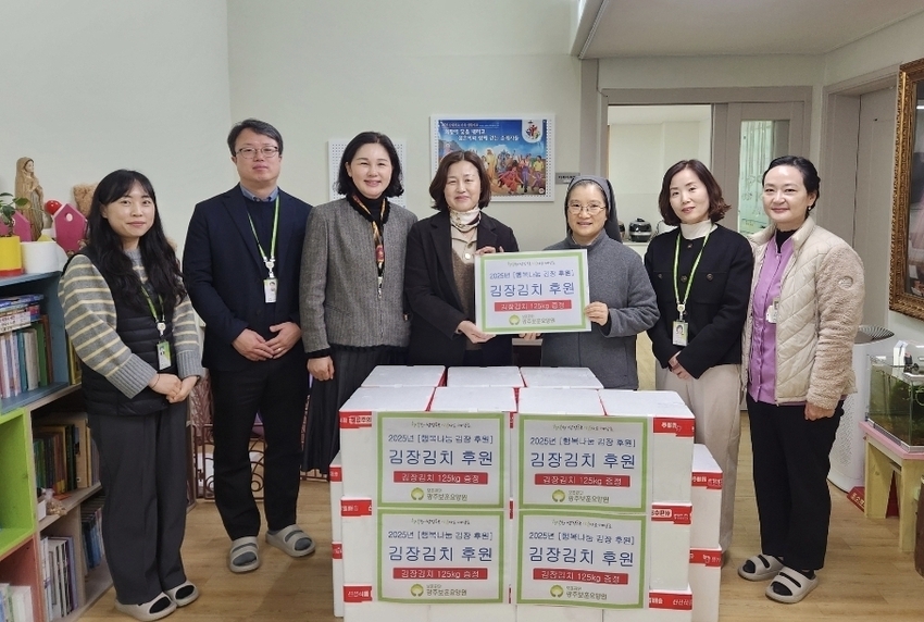 전남투데이 김경민 기자 | 한국보훈복지의료공단(이사장 윤종진) 광주보훈요양원(원장 최종복)은 광산구 아동그룹홈 시설인 광주나자렛집(시설장 윤남화)에 김장김치 125kg을 전달했다고 11일 밝혔다.