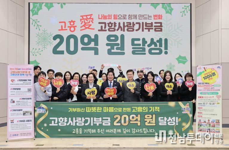 전남투데이 조평훈 기자 | 고흥군은 올해 추진해 온 고향사랑기부금 모금이 지난 12월 10일 기준 누적 20억 원을 달성했다고 밝혔다.