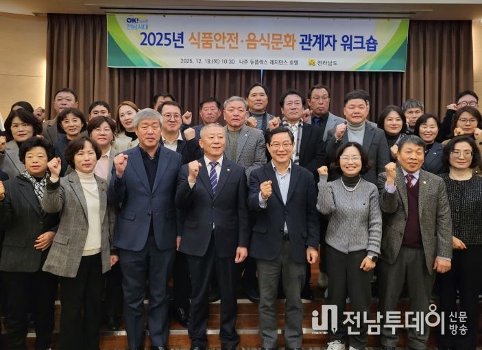 전남투데이 김용희 기자 | 전라남도는 18일 나주 듀플렉스 레지던스 호텔에서 2025년 식품안전·음식문화 관계자 워크숍을 열어 지역사회 건강을 지키고 관광객에게 맛있는 먹거리를 제공하는 품격 있는 음식문화 조성을 다짐했다고 밝혔다.
