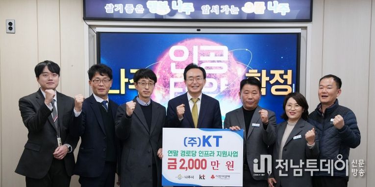 나주시(시장 윤병태)는 ㈜KT(대표이사 김영섭)로부터 노후 취약 경로당 난방 인프라 지원을 위한 성금 2천만 원을 기탁받았다고 22일 밝혔다.