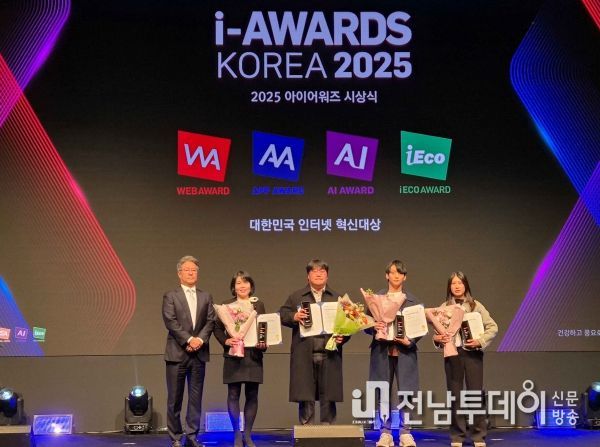 전남투데이 김용희 기자 | 한국전력은 자사 홈페이지가 ‘웹 어워드 코리아 2025’에서 기술 혁신대상과 모바일 공공서비스 혁신대상을 수상하며 2개 부문에서 대상을 차지했다고 밝혔다.