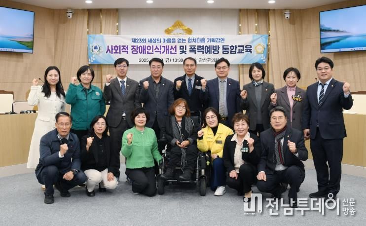전남투데이 김경민 기자 | 광산구의회가 19일 전체 의원을 대상으로 장애인식 개선 및 4대 폭력 예방을 위한 ‘정치다움 기획강연’을 개최했다.
