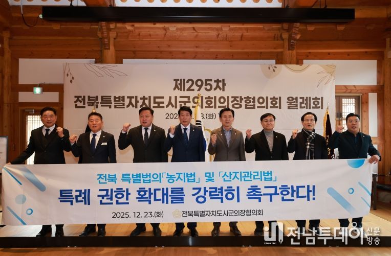 전남투데이 조평훈 기자 | 지난 23일 무주 태권도원에서 열린 전북특별자치도 시군의회의장협의회(회장 남관우 전주시의회 의장) 월례회에서 손종석 순창군의회 의장이 건의한 전북특별법 핵심 특례인 '농지법'과 '산지관리법'의 실효성 확보를 위한 권한 확대를 촉구하는 건의안이 채택됐다.
