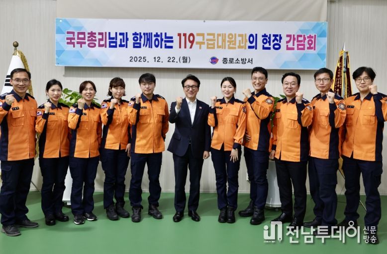 전남투데이 정홍균 기자 | 김민석 국무총리는 12월 22일 서울 종로소방서를 방문하여 응급환자이송체계 최일선에 있는 119구급대원의 의견을 듣는 자리를 가졌다.