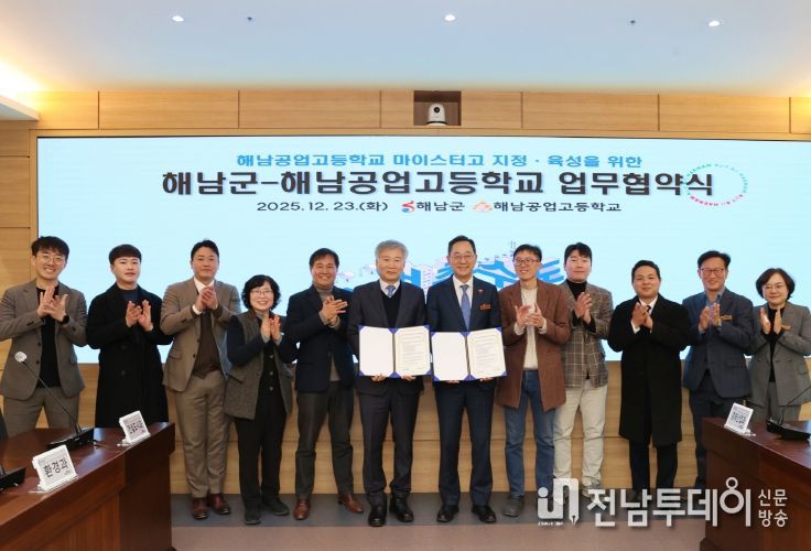 해남군과 해남공업고등학교는 23일 마이스터고 지정 유치를 위한 업무협약(MOU)을 체결하고, 지역 전략산업을 이끌 전문 기술 인재 양성에 본격적으로 나서기로 했다.