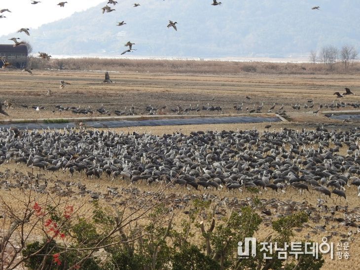 전남투데이 조평훈 기자 | 순천시는 2025년 순천만 권역에서 흑두루미 개체수가 최대 8,600마리까지 확인됐으며, 최근 모니터링 기준 약 8,000마리가 월동 중이라고 밝혔다.