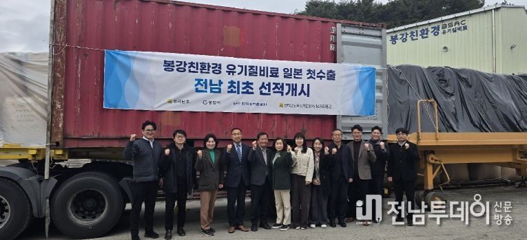 전남투데이 조평훈 기자 | 유기질비료 전문기업인 봉강친환경영농조합법인이 농업 선진국인 일본 비료 시장에 성공적으로 진출하며, 지난 23일 친환경 유기질비료의 일본 첫 수출을 기념하는 선적 상차식을 개최했다.