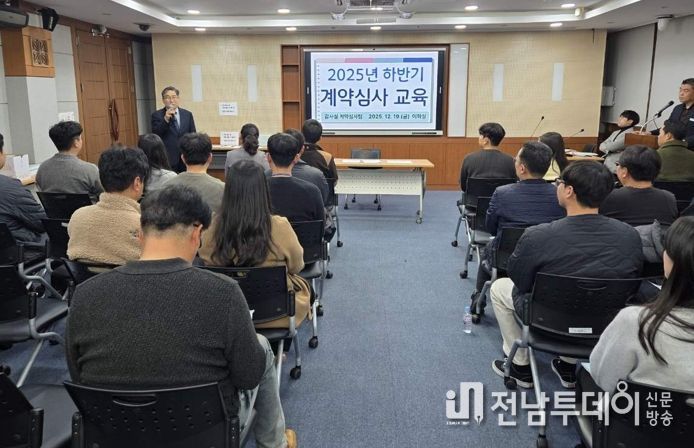 나주시는 지난 19일 시청 이화실에서 공사, 용역, 물품 관련 사업부서 담당자와 계약 담당자 등 80여 명을 대상으로 ‘2025년 하반기 계약심사 직무교육’을 실시했다고 24일 밝혔다.