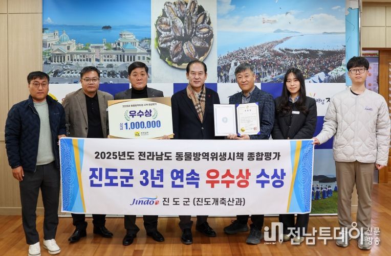전남투데이 문경식 기자 | 진도군은 전라남도에서 주관한 ‘2025년 동물방역위생시책 종합평가’에서 우수상을 받으며, 3년 연속 우수 지방자치단체로 선정됐다.