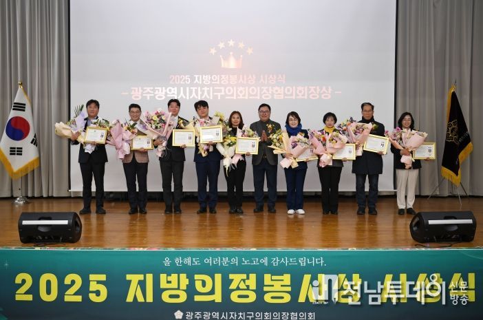 전남투데이 김경민 기자 | 광주광역시자치구의회의장협의회(회장 김명수)가 26일 광산구청 7층 윤상원홀에서 ‘2025년 하반기 지방의정봉사상’ 시상식을 개최했다.
