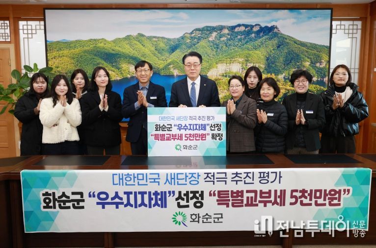 전남투데이 강영선 기자 | 화순군은 지난 24일 행정안전부가 주관한 ‘대한민국 새단장’ 캠페인 추진실적 평가에서 우수 지자체로 선정돼 특별교부세 5천만 원을 확보했다고 밝혔다.