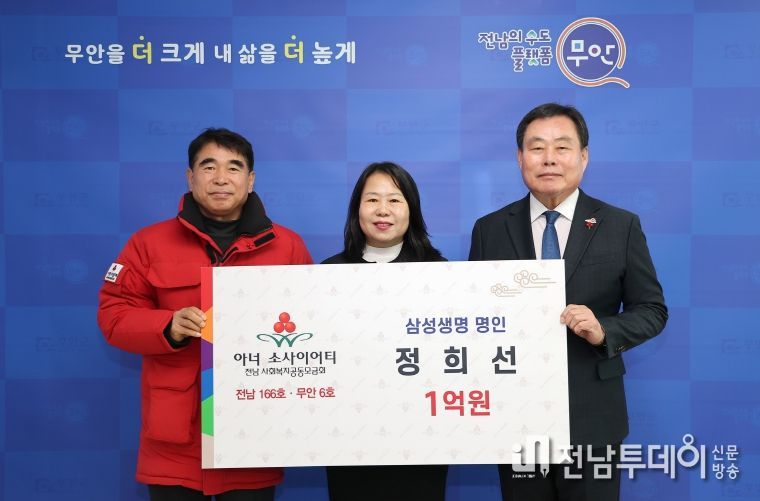 전남투데이 김길룡 기자 | 전남 무안군은 지난 26일 삼성생명 정희선 명인의 무안군 제6호(전남 166호) 아너소사이어티 회원 가입식을 개최했다.