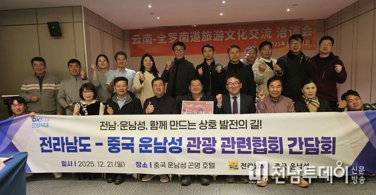 전남투데이 김용희 기자 | 전라남도는 중국 운남성 곤명 호텔에서 운남성 지역 여행 관련 협회와 간담회를 최근 열어 전남의 다양한 관광 매력을 소개하며, ‘전남 사랑애 서포터즈’와 연계한 상호 교류방안을 논의했다고 밝혔다.