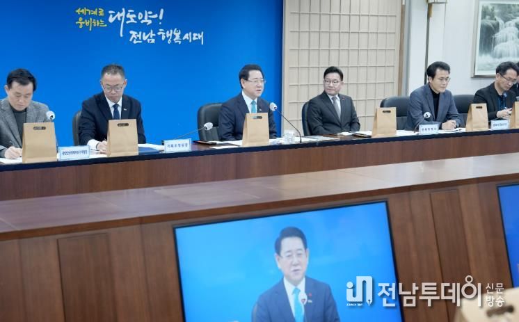 김영록 지사는 이날 오전 도청 서재필실에서 2025년 마지막 실국 정책회의를 열어 “정부가 통합에 과감한 인센티브를 주겠다고 하므로, 여건이 되면 특별자치도가 아니고 바로 대통합으로 갈 수도 있을 것”이라며 새해 화두로 AI·에너지 시대 광주·전남 대부흥을 위한 행정통합을 제시했다.