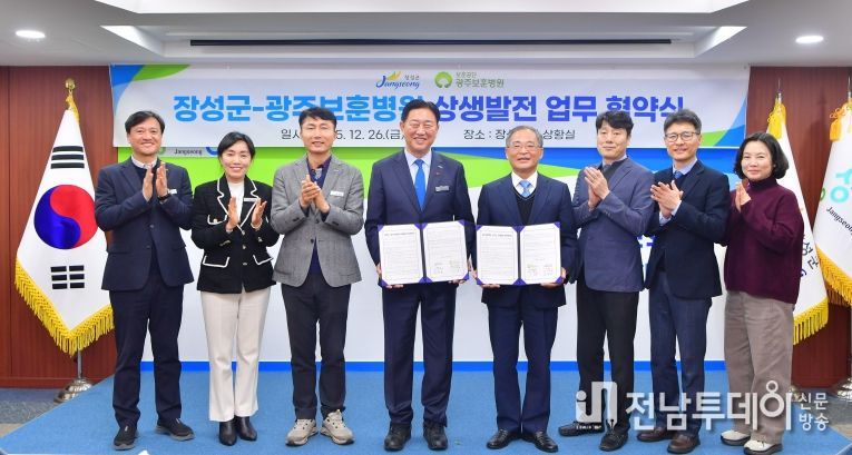 전남투데이 이현승 기자 | 장성군이 지난 26일 광주보훈병원과 군민 건강 증진 및 지역 발전을 위한 업무협약을 맺었다. 김한종 장성군수, 이삼용 광주보훈병원 원장 등 관계자 10여 명이 함께했다.