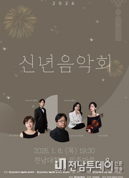 한편, 2026 신년음악회 티켓 예매는 네이버 예약을 통해 가능하며, 공연 관련 문의는 전남대학교 예술대학 음악학과(062-530-0390) 또는 예나엔터테인먼트로 하면 된다.
