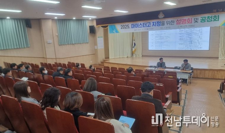 해남공업고는 해남군청, 해남교육지원청, 기업 관계자, 해남군교육재단, 학교운영위원회 및 도교육청 관계자들이 참석한 가운데 마이스터고 지정을 위한 설명회를 개최하고 학교 혁신 추진 계획을 공유했다.