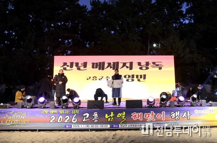 전남투데이 조평훈 기자 | 고흥군은 지난 1일 새벽 남열해돋이해수욕장에서 열린‘2026 고흥 남열 해맞이 행사’가 군민과 관광객 등 8천여 명이 함께한 가운데 성황리에 마무리됐다고 밝혔다.