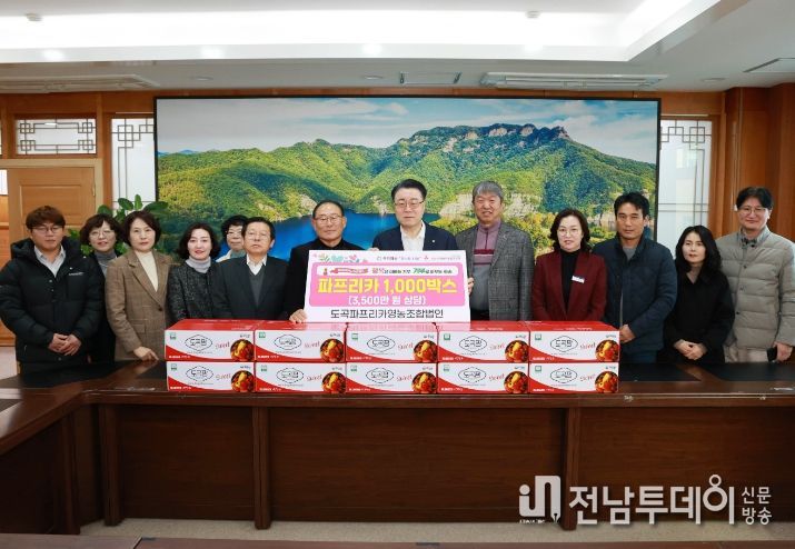 전남투데이 강영선 기자 | 화순군은 지난 8일 도곡파프리카영농조합법인(대표 문형윤)에서 취약계층을 위해 파프리카 3kg 1,000박스(3,500만 원 상당)를 기부했다고 밝혔다.