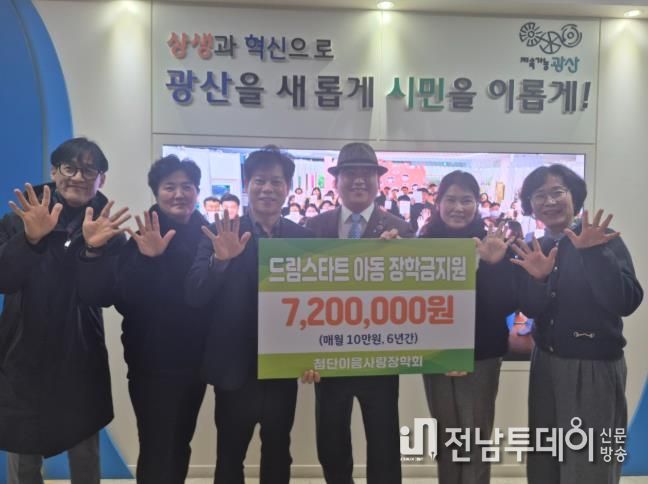 전남투데이 김경민 기자 | 광주 광산구 첨단이음사랑장학회가 지역 청소년들을 위해 장학금을 지원했다.