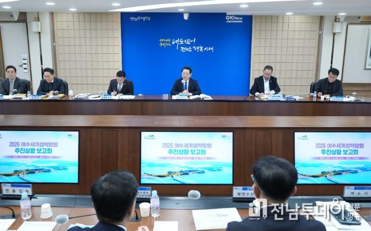 전남투데이 김용희 기자 | 전라남도는 13일 도청 서재필실에서 2026 여수세계섬박람회 추진상황 보고회를 열고 여수시·조직위 등과 박람회 성공개최를 위한 ‘원팀 체제’를 가동, 전시·행사·안전·교통 분야별 협업과 현장 대응력을 높이기로 했다.