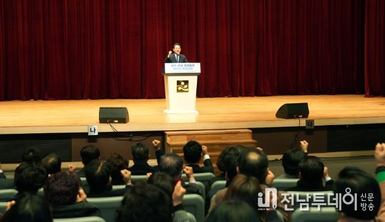 결의대회에는 김영록 전남도지사와 민간·사회단체 대표, 도민 등 1천여 명이 참석해 행정통합의 필요성과 기대효과를 공유했다.