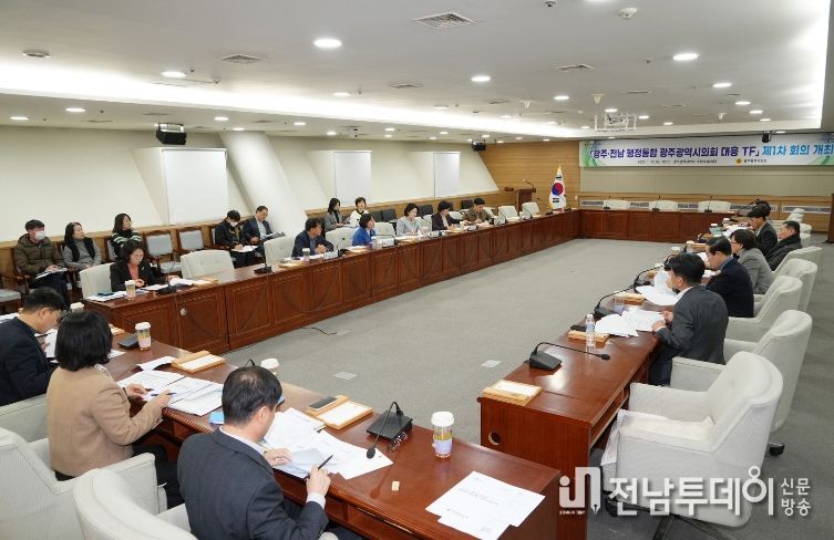 전남투데이 김경민 기자 | 광주광역시의회는 광주·전남 행정통합 논의에 체계적으로 대응하기 위해 '광주·전남 행정통합 광주광역시의회 대응 TF'를 구성하고, 1월 13일 제1차 회의를 개최했다.