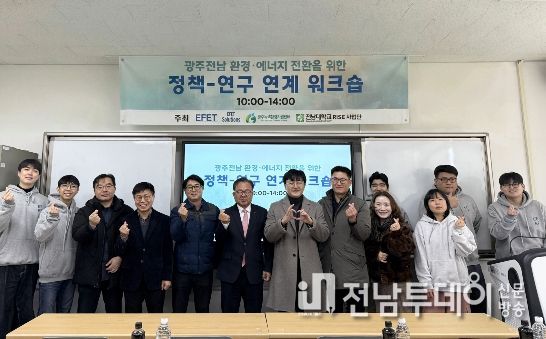 전남투데이 김용희 기자 | 광주녹색환경지원센터(센터장 정석희·전남대학교 환경에너지공학과 교수)는 14일 전남대학교 공과대학에서 영산강유역환경청, 전남대학교 RISE사업단 등과 함께 ‘2026년도 광주·전남 환경·에너지 전환을 위한 정책-연구 연계 워크숍’을 개최했다고 밝혔다.