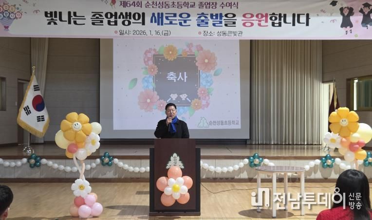 전남투데이 김용희 기자 | 김정희 전남도의회 교육위원장은 1월 16일, 순천성동초등학교(교장 오화선)에서 열린 제64회 졸업식에 참석해 졸업생들의 새로운 출발을 축하하고 따뜻한 격려의 메시지를 전했다.