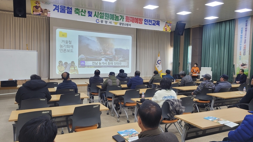 전남투데이 조평훈 기자 | 광양소방서(서장 김옥연)는 15일 광양시 농업기술센터 농업인교육관에서 겨울철 소방안전문화 확산을 위해 축산 및 시설원예농가를 대상으로 ‘찾아가는 소방안전 교육’을 실시했다고 밝혔다.
