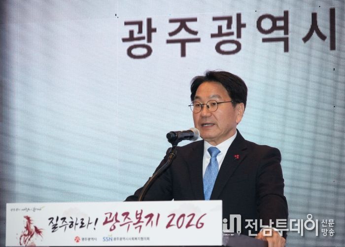 전남투데이 김경민 기자 | 광주광역시는 광주시사회복지협의회와 함께 16일 서구 웨딩그룹 위더스 광주에서 민·관·정·복지가 한자리에 모여 복지 비전을 공유하는 ‘2026년 광주복지 신년인사회’를 개최했다.