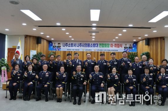 전남투데이 김윤걸 기자 | 나주소방서는 2026년 1월 16일, 나주소방서 4층 대회의실에서 나주시 의용소방대연합회장 이·취임식을 개최했다.