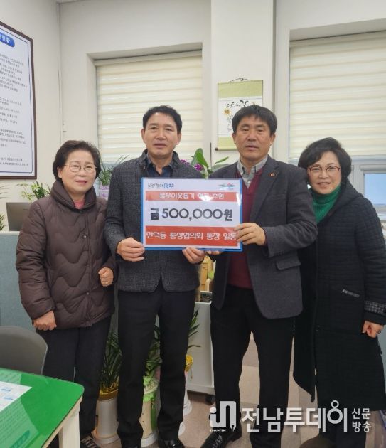 전남투데이 조평훈 기자 | 만덕동통장협의회(회장 장혜훈)는 지난 16일, 관내 어려운 이웃을 돕기 위해 통장들이 뜻을 모아 마련한 성금 50만 원을 만덕동(동장 문채환)에 기탁했다.