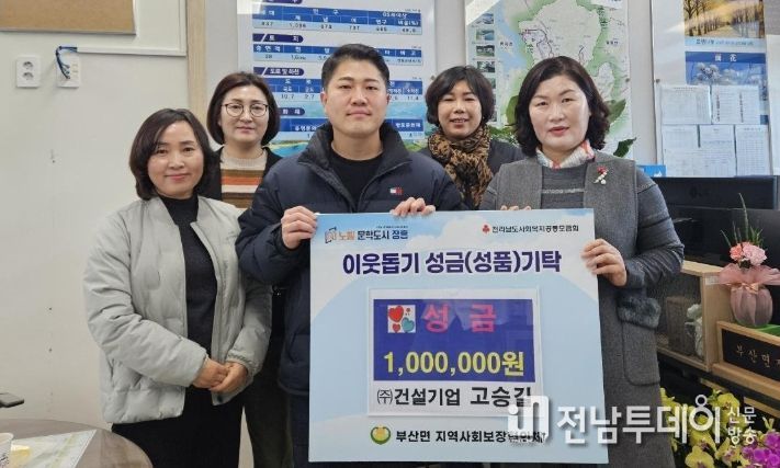 전남투데이 김용희 기자 | 고승길 ㈜건설기업 대표는 최근 부산면지역사회보장협의체(공동위원장 박진영·이경환)에 이웃돕기 성금 100만원을 기탁했다.