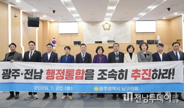 이에, 남구의회 의원들은 ▲광주광역시와 전라남도가 상호 신뢰와 협력을 바탕으로 행정통합을 중단 없이 추진할 것 ▲정부와 국회가 통합 지방정부로서 실질적인 자치권 확대를 보장하는'광주·전남 통합 특별법'을 조속히 제정할 것을 촉구했다.