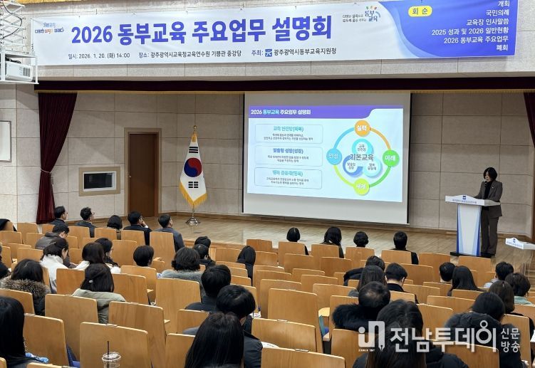 전남투데이 김경민 기자 | 광주동부교육지원청은 20일 광주시교육청교육연수원 중강당에서 ‘2026년 동부교육 설명회’를 개최했다.