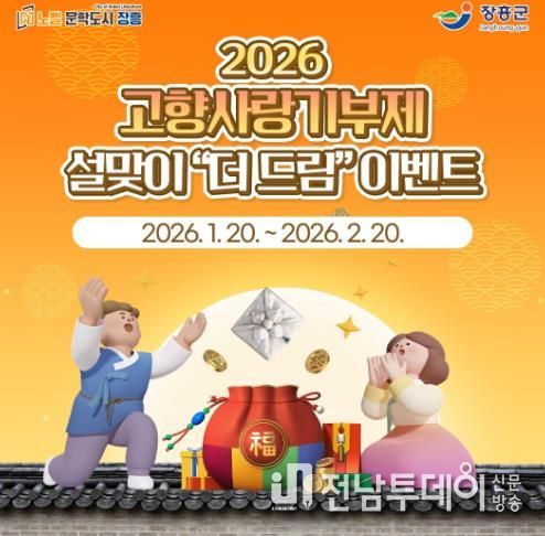 전남투데이 김용희 기자 | 장흥군은 설 명절을 앞두고 고향사랑기부제 활성화를 위해 1월 20일부터 2월 20일까지 ‘2026 설맞이 고향사랑기부제 더 드림 이벤트’를 진행한다.