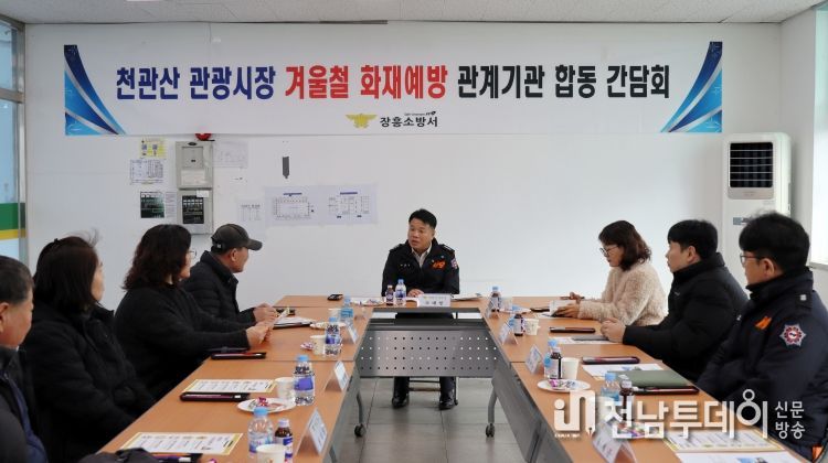 전남투데이 김용희 기자 | 장흥소방서는 전통시장 화재 위험요인을 사전에 차단하고 안전관리 수준을 높이기 위해 1월 21일 오전 11시 천관산관광시장 상인회 사무실에서 화재예방을 위한 관계기관 합동 간담회를 개최했다.