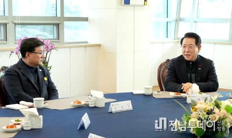 김영록 지사는 간담회에서 전남이 대한민국 에너지 전환의 핵심 거점임을 강조하며, 광주·전남 행정통합의 성공적 추진과 재생에너지 중심 지역발전을 위한 정부 차원의 적극적인 지원을 요청했다.