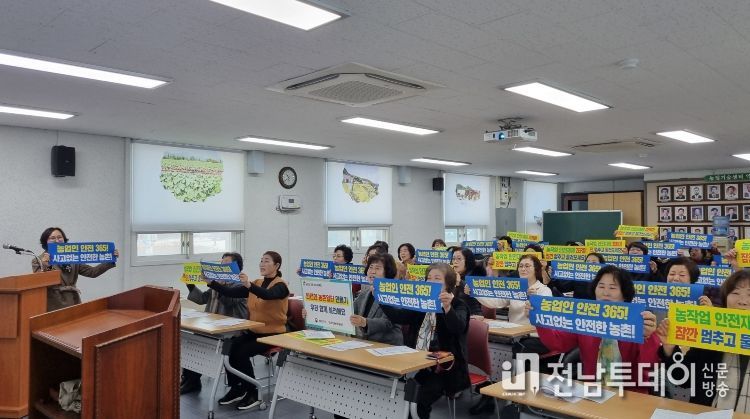 전남투데이 박세훈 기자 | 무안군은 여성 농업인의 안전한 농작업 환경 조성과 재해 예방을 위해 23일 무안군농업기술센터에서 생활개선회원 60여 명을 대상으로 ‘농업인 안전실천 역량강화 교육’을 실시했다.
