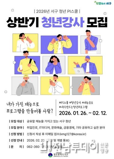 전남투데이 김경민 기자 | 광주광역시 서구는 청년들이 강의 기획부터 운영까지 직접 참여하는 ‘재능공유 청년강사’ 사업을 본격 추진한다.