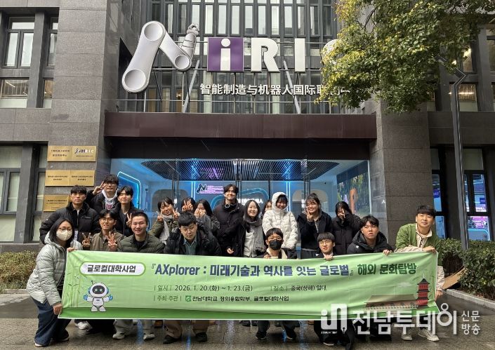 전남투데이 김용희 기자 | 전남대학교 창의융합학부(학부장 이인혜)는 ‘글로컬대학사업’의 일환으로 지난 1월 20일부터 23일까지 3박 4일간, 중국 상해와 항주 일대에서 무전공 학생들을 위한 글로벌 진로 탐방 프로그램 'AXplorer: 미래기술과 역사를 잇는 글로벌 탐방'을 성황리에 마쳤다.