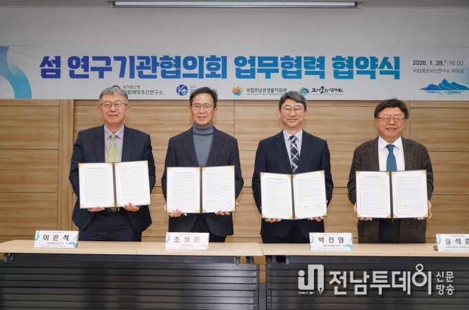 전남투데이 김용희 기자 | 기후에너지환경부 산하 국립호남권생물자원관(관장 박진영)은 국립해양유산연구소, 한국섬진흥원, 국립목포대학교 도서문화연구원과 함께 2026년 1월 28일 국립해양유산연구소(전남 목포시 소재)에서 '섬 연구기관 협의회' 출범을 위한 업무협약을 체결했다.