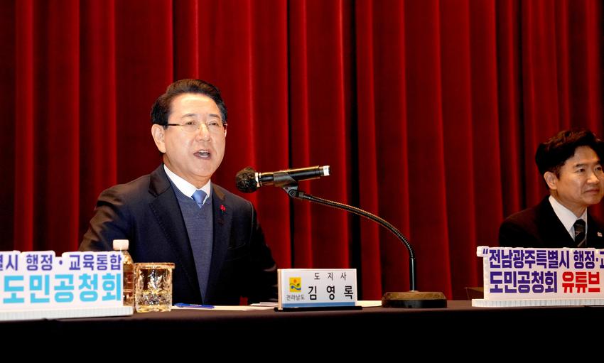 김영록 지사는 이날 서남권 3개 군 공청회에서 “해남·진도·완도는 농수산업과 해양관광을 기반으로 재생에너지·해양치유·AI·데이터센터 등 전남의 미래비전을 현실화할 성장 잠재력이 큰 지역”이라며 “행정통합을 통해 첨단산업과 해양·농수산 경쟁력을 강화하고 관광·정주여건 개선 등 서남권 도민이 체감할 변화를 만들겠다”고 강조했다.