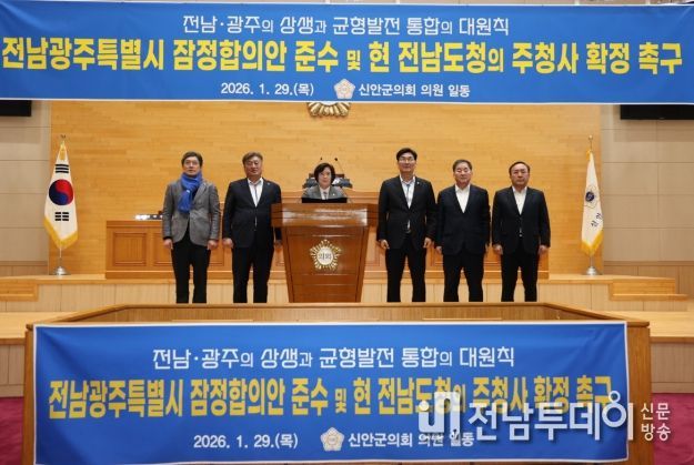 신안군의회는 “행정통합은 특정 지역의 1극 체제를 강화하는 방향이 아니라, 전라남도와 광주가 함께 책임지고 상생·균형발전하는 통합이 돼야 한다”라며, “앞으로도 전남 전 지역의 균형 발전과 도민의 뜻이 존중되는 행정통합 논의가 이뤄지도록 지속적으로 목소리를 내겠다”라고 밝혔다.
